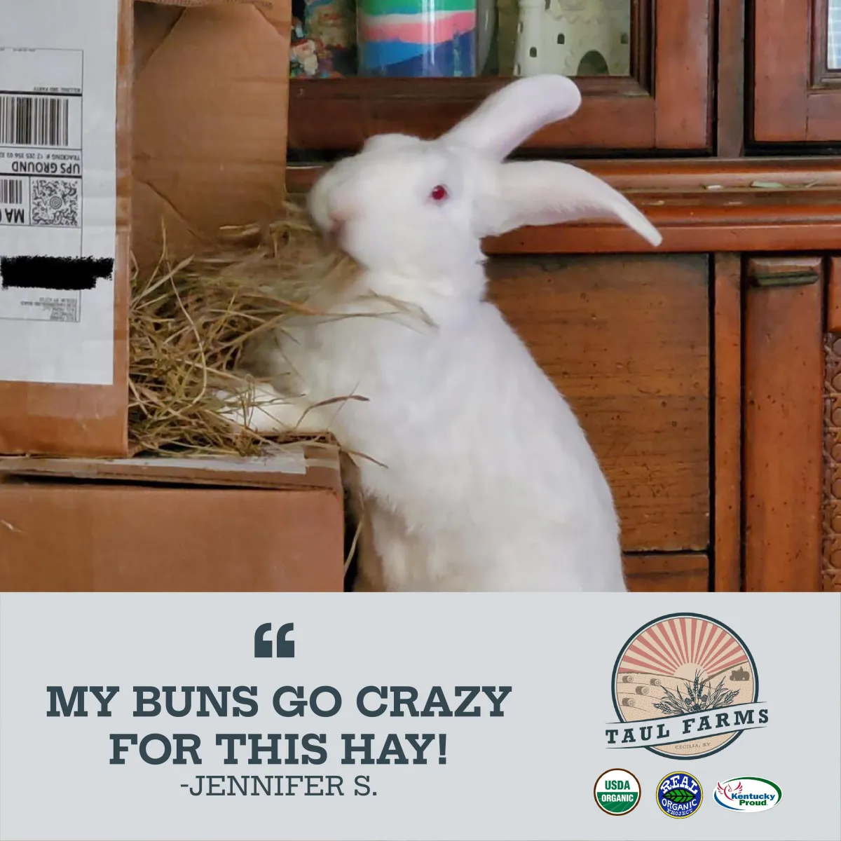 100% Certified ORGANIC Pure Sun-dried Fresh Hay for Rabbits, Guinea Pigs, Chinchillas & Others. Organic Mixed Hay Hand Packed From Our KY Family Farm Hay Barn to Your Small Pet. Hay Mixture of Organic Orchard grass, Endophyte-free Fescue and Red and White Clover. Yes, CLOVER! Yummmmm!